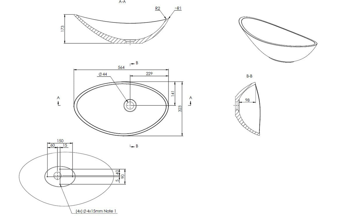 Allun Resin Washbowl - H 173 x W 564 x D 323mm