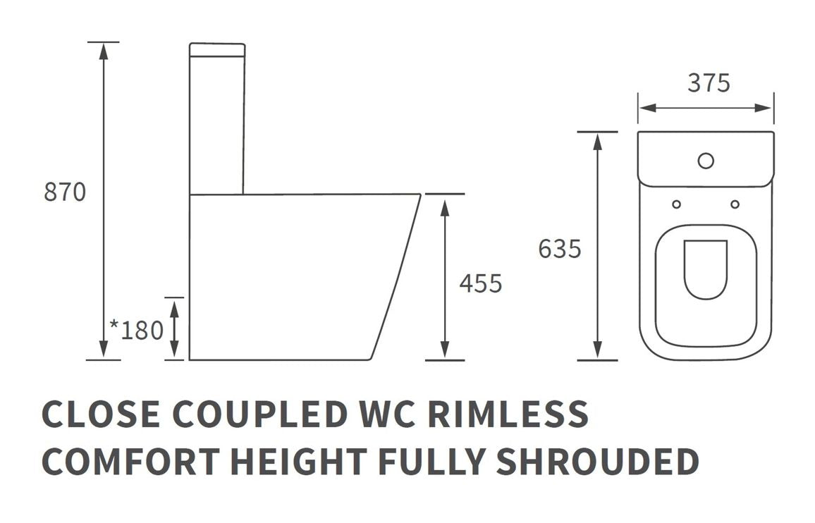 Calder Rimless Close Coupled Fully Shrouded Comfort Height WC & Soft Close Seat