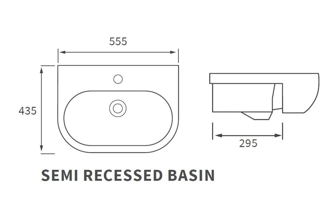 Avon Semi Recessed Basin - H 185 x W 555 x D 435mm
