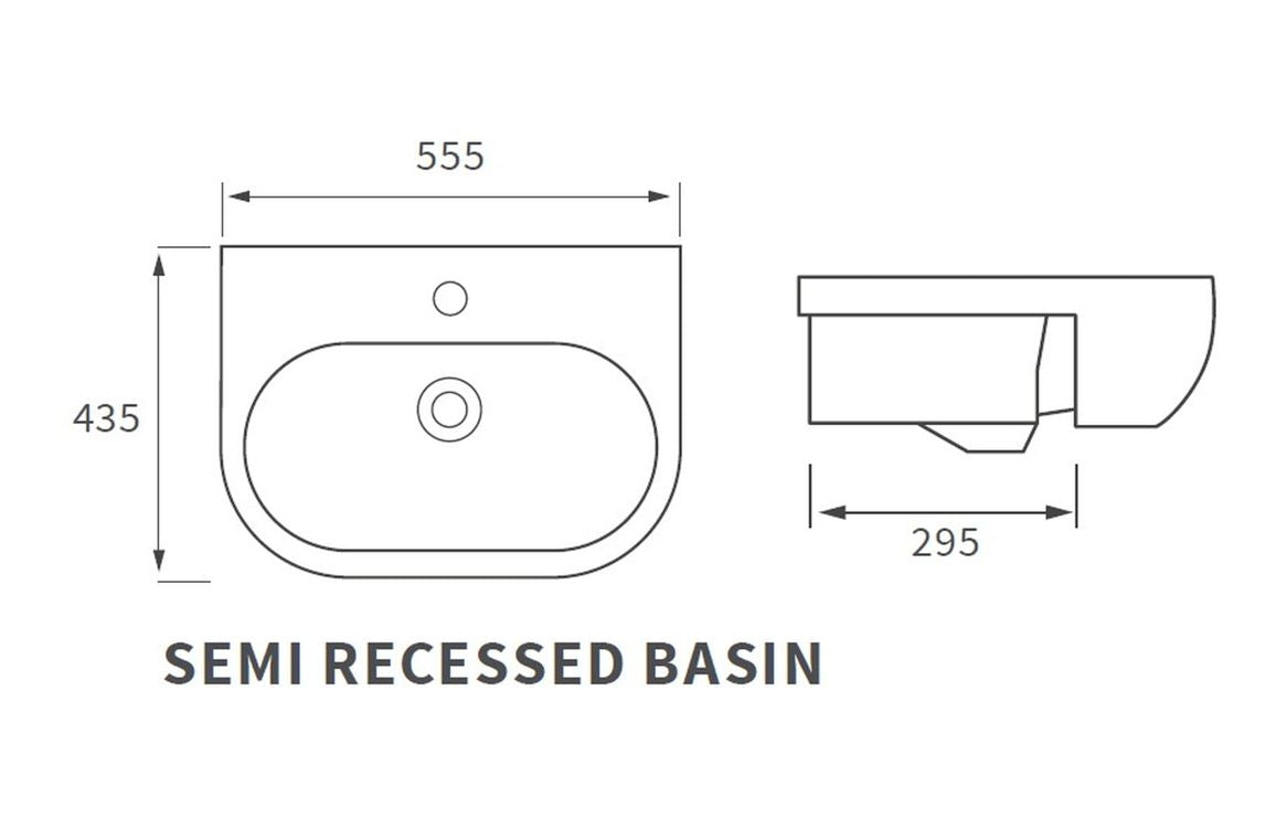 Ayr Semi Recessed Basin - H 185 x W 555 x D 435mm
