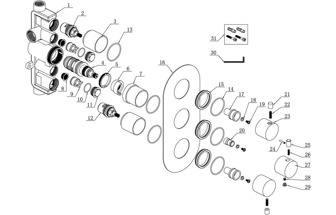 - This product is a replacement for DICM0166 Circa Thermostatic Two Outlet Triple Shower Valve which is now discontinued